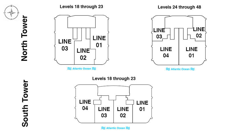 | NT 01 Niveles 18-23 | 4 Hab+D / 6.5 Baños (4,142 SF / 385 M2) |